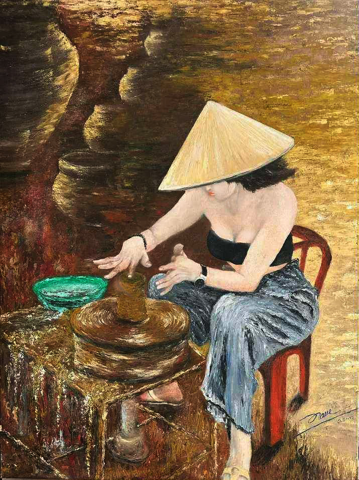 Located along the Thu Bon River, Thanh Ha Pottery Village has been known for centuries for its handmade ceramics and earthy terracotta creations. This digital edition preserves the soft natural lighting, rich clay tones, and handcrafted atmosphere that define the spirit of the village. Through thoughtful composition and layered brushwork, the artwork celebrates patience, heritage, and creative tradition.