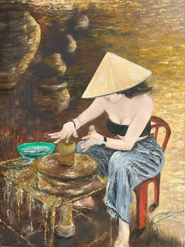 The Thanh Ha Pottery Village Digital Art Download captures the warmth, texture, and cultural depth of one of Vietnam’s most historic artisan communities. Inspired by the original oil painting “Clay Dreams,” this printable artwork reflects the quiet beauty of traditional clay craftsmanship in Hoi An.